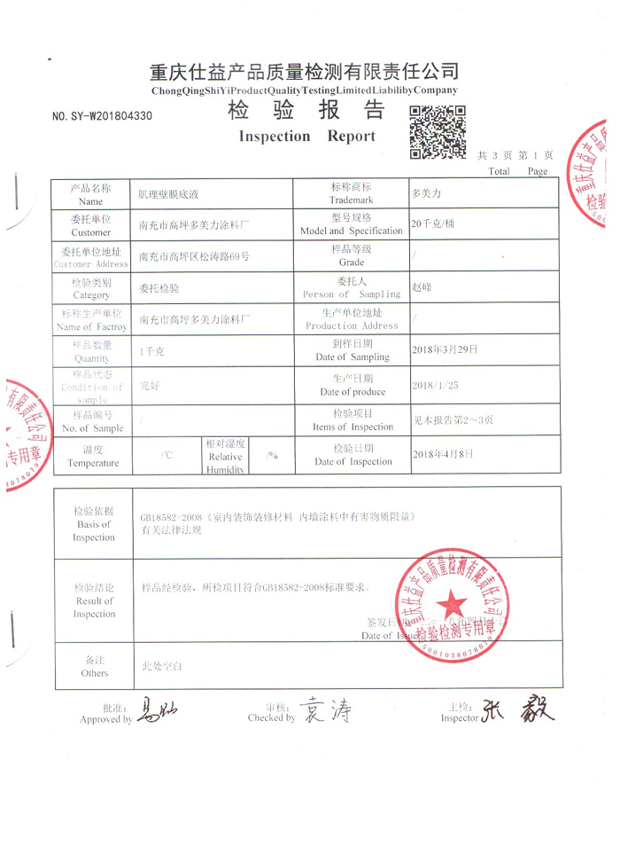 主料檢驗報告
